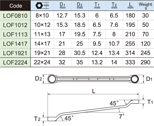 LOFS601 LIGHTOOL 6 Pcs Offset Wrench Set 8x10 - 22x24 mm