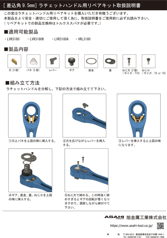 VRK3001 9.5mm[3/8"] Ratchet Handle Repair Kit