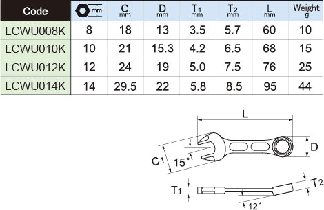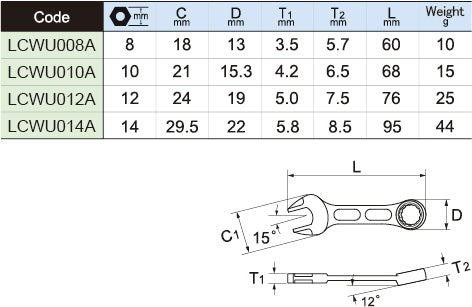 LIGHTOOL Tactile LCWU コンビネーションスパナ(メタルブラック) 8 - 14 mm